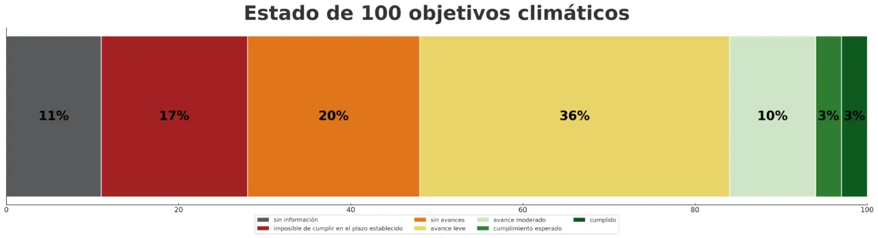 En el análisis, coordinado por la fundación Sustentabilidad Sin Fronteras y del cual formaron parte más de 20 organizaciones multisectoriales -entre las que se encuentra Chequeado-, cada objetivo quedó clasificado en un único estado de avance con evidencia documentada y trazable, a partir de pedidos de acceso a la información y del trabajo técnico independiente de las organizaciones.