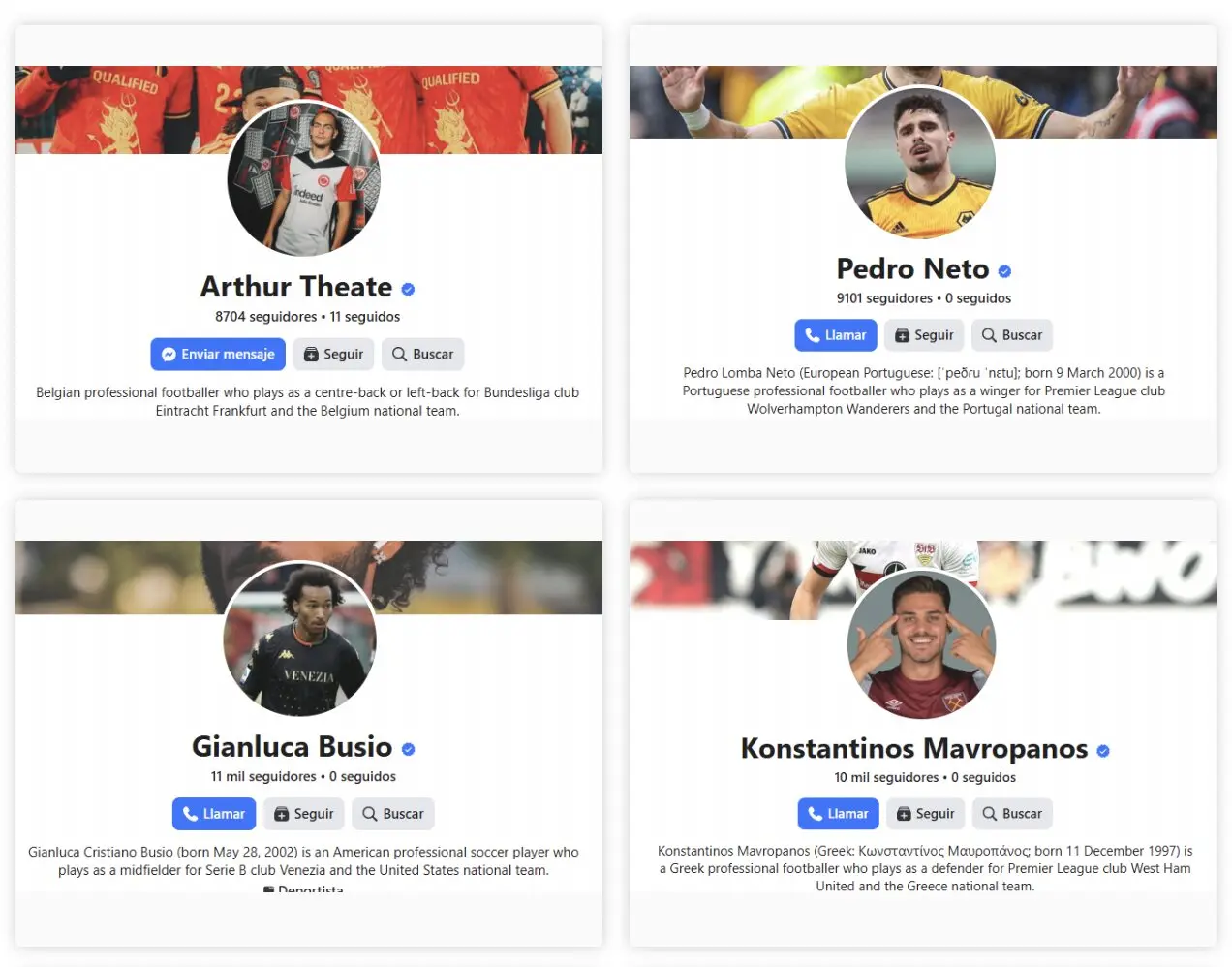 Cuentas ‘Meta Verified’ con los nombres de los futbolistas Pedro Neto o Arthur Theate han publicado cientos de esos anuncios fraudulentos. Sin embargo, los representantes de ambos han confirmado a Fundación Maldita.es que estos perfiles son falsos y que ninguno de los dos jugadores tiene cuenta en Facebook.