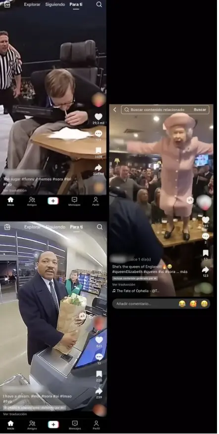 Esta confusión sobre los límites de lo que está permitido y lo que no ha dado cabida a que se creen y compartan todo tipo de vídeos que muestran a figuras públicas. Algunos de ellos pueden producir desinformación y aumentar la sensación de desconfianza de los usuarios ante lo que ven. Gracias a sus resultados hiperrealistas, los vídeos creados con esta app no presentan muchos de los errores que solíamos buscar para identificar si un vídeo era real o un deepfake. A esto se suma que en internet ya hay herramientas para eliminar las marcas de agua de Sora, y que los vídeos están circulando fuera de su contexto original (se comparten en otras redes sociales, en ocasiones, sin etiquetas que los identifiquen como creados con IA).