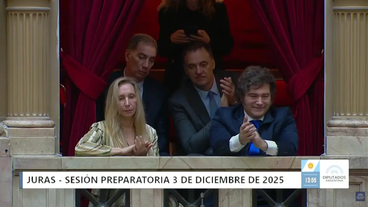 Con la presencia del presidente Javier Milei y hermana Karina en los palcos del recinto, asumieron hoy 127 nuevos diputados nacionales que renovarán la mitad de la Cámara baja. Entre ellos, se destacan figuras como el ministro de Defensa, Luis Petri, la modelo Virginia Gallardo, ambos por La Libertad Avanza, y los dirigentes sociales Juan Grabois y Hugo Moyano (hijo), por Fuerza Patria.