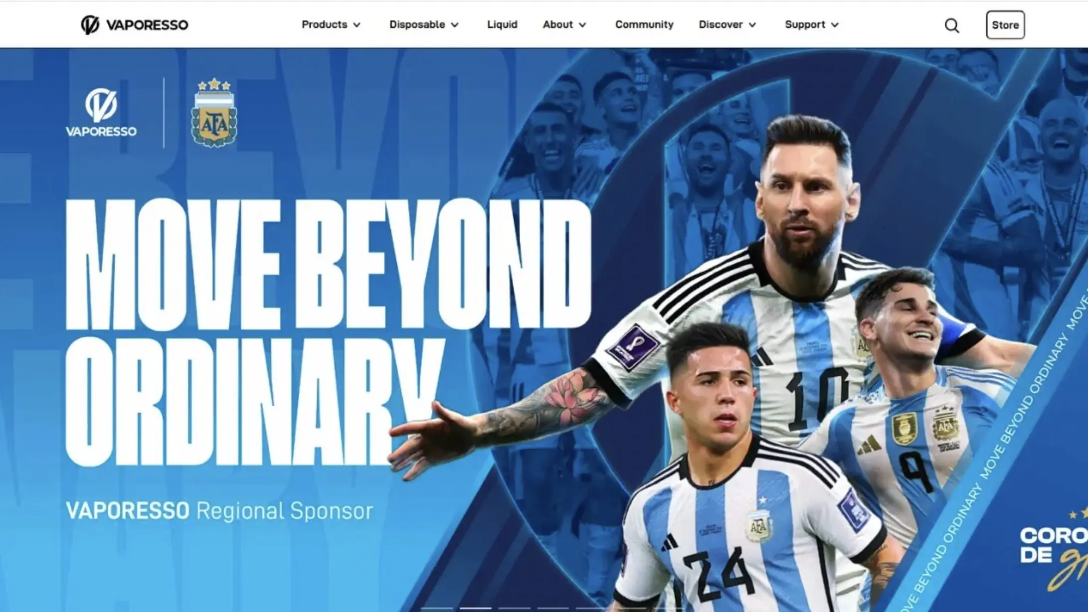El vínculo comercial no había sido difundido en la web institucional de la AFA, pero sí se encuentra visible a través de un comunicado de la marca fundada en 2015, propiedad de la empresa Smoore International, con sede en Shenzhen, China. En la web de Vaporesso se exhiben piezas publicitarias de la Selección argentina junto a advertencias sanitarias sobre el contenido de nicotina de sus productos.