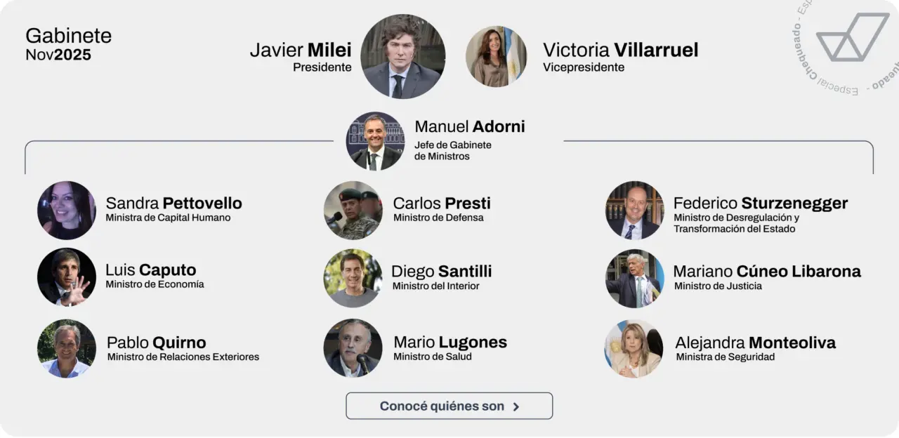El presidente de la Nación, Javier Milei (La Libertad Avanza), anunció que a partir del 10 de diciembre Alejandra Monteoliva será la nueva ministra de Seguridad y el Teniente General Carlos Presti, el nuevo ministro de Defensa, en reemplazo de Patricia Bullrich y Luis Petri, quienes asumirán sus bancas en el Congreso.