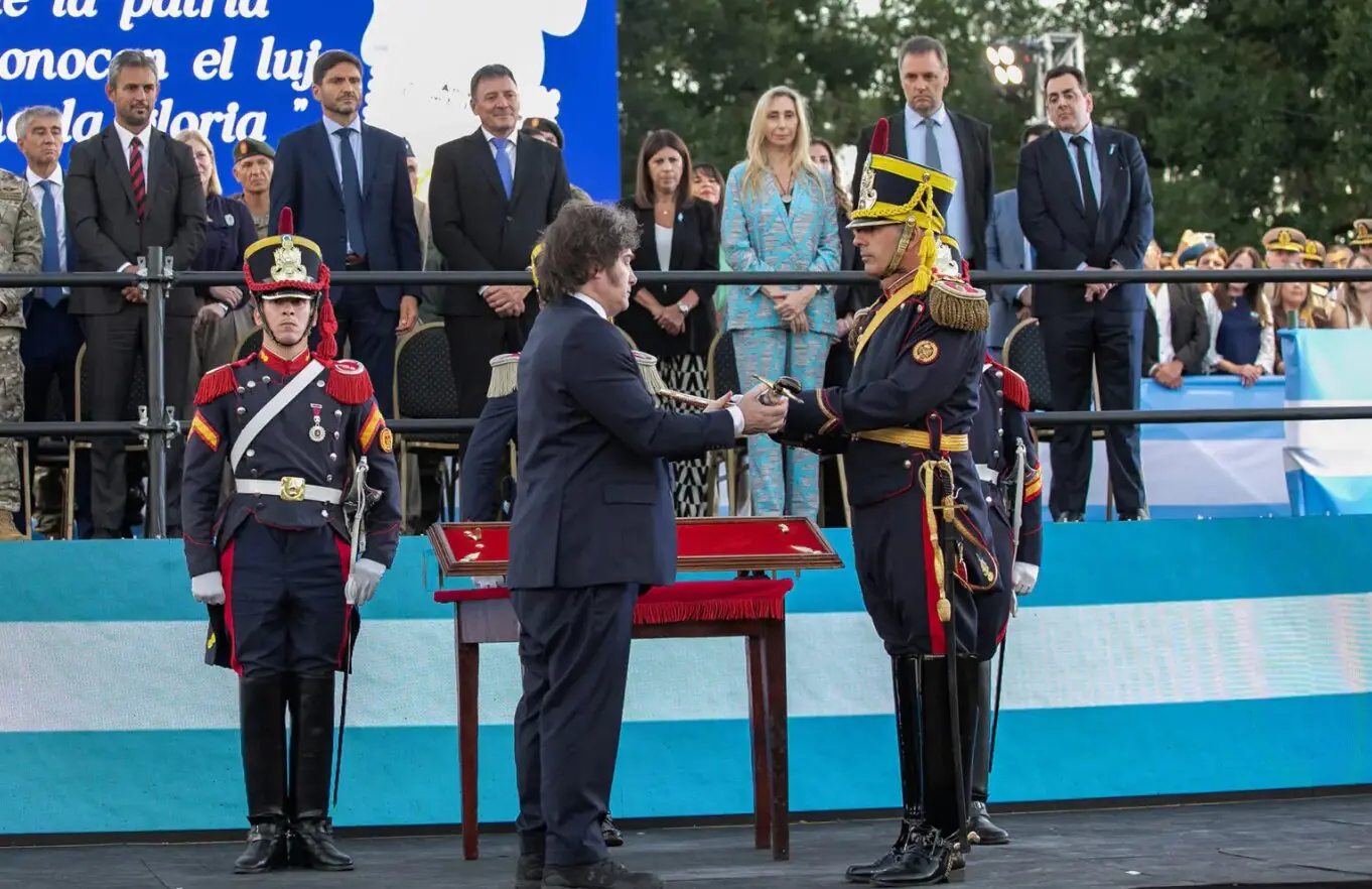El traslado del sable al cuerpo de Granaderos tiene continuidad con otros actos de Milei que refuerzan la presencia de Fuerzas Armadas en vínculo con símbolos patrios. Por ejemplo, las celebraciones por el Día de la Independencia -el 9 de Julio de 2024- estuvieron marcadas por un importante desfile militar realizado en la Avenida Libertador en la Ciudad de Buenos Aires.