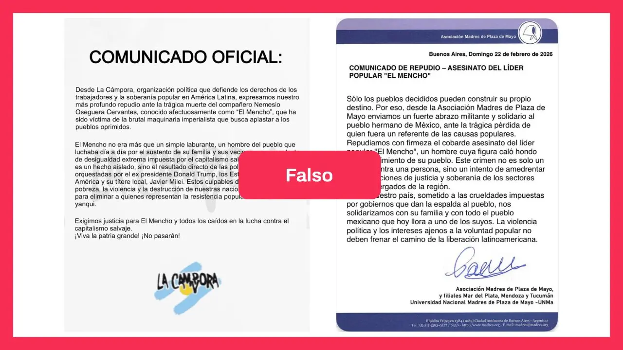 - Es falso que La Cámpora y Madres de Plaza de Mayo hayan publicado comunicados de repudio: no aparecen en sus canales oficiales y la estética no coincide.
