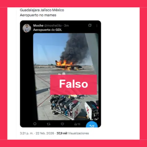 El Gobierno del estado de Jalisco también indicó en su cuenta oficial de X que la imagen viral que estamos verificando de un avión en llamas en México es falsa. Además, fact-checkers internacionales verificaron esta desinformación.