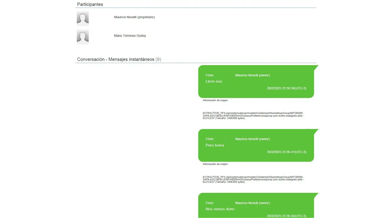 Sin embargo, Chequeado pudo confirmar que el peritaje informático sobre el teléfono celular de Novelli no contiene ese chat. Dos abogados representantes de las querellas, que tienen acceso al expediente, también negaron ante la consulta de este medio la existencia de ese intercambio entre Milei y Novelli.