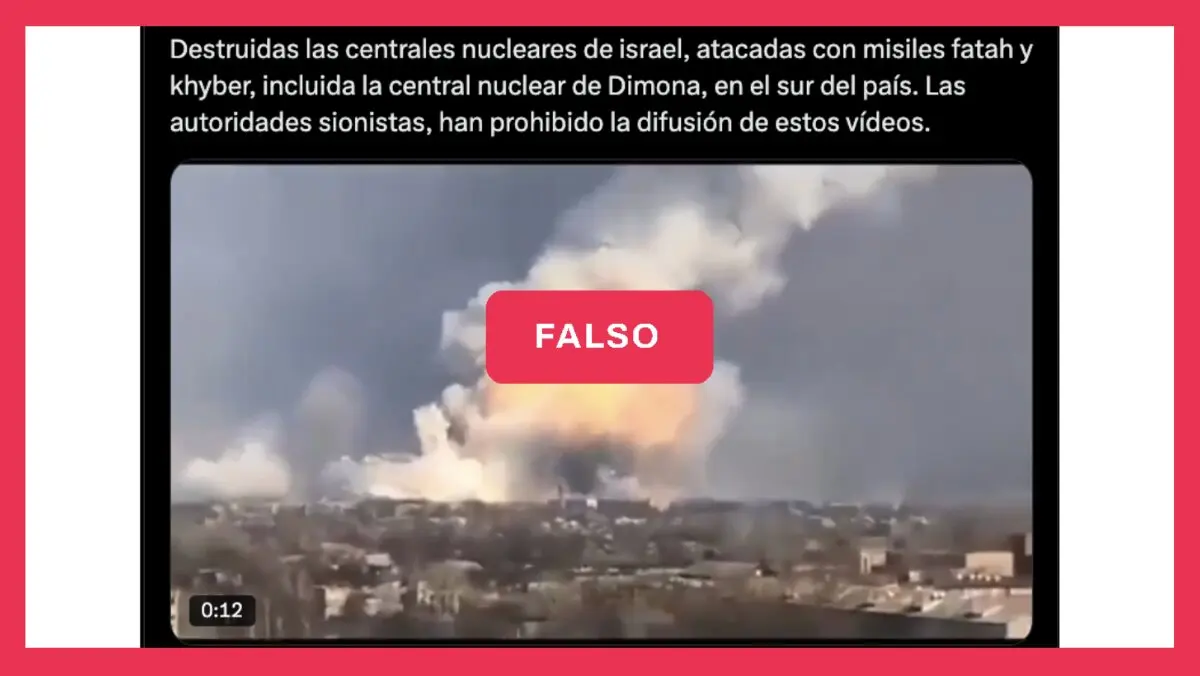 Circula en redes sociales un video que señala: “Destruidas las centrales nucleares de Israel, atacadas con misiles Fatah y Khyber, incluida la central nuclear de Dimona, en el sur del país. Las autoridades sionistas, han prohibido la difusión de estos vídeos” (sic).