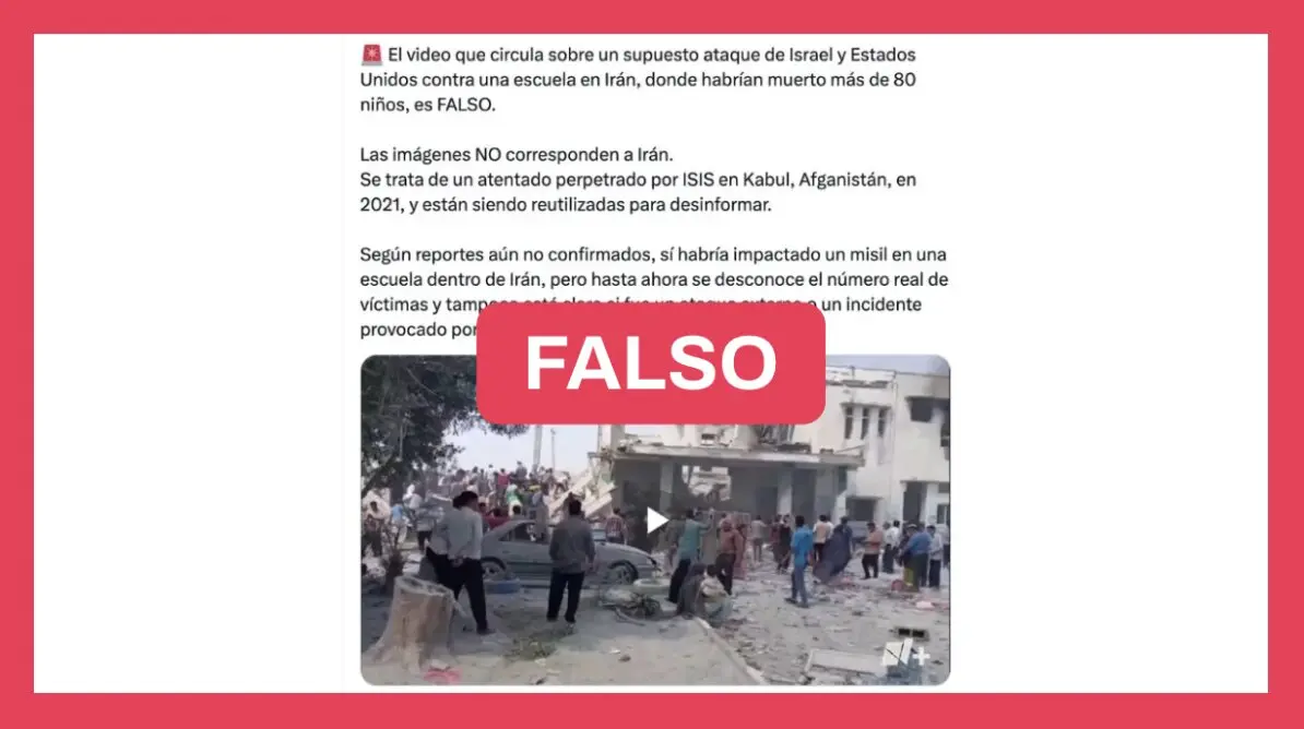 Sin embargo, esto es falso. El video sí es actual y corresponde al ataque ocurrido en una escuela en el sur de Irán el 28 de febrero de 2026.