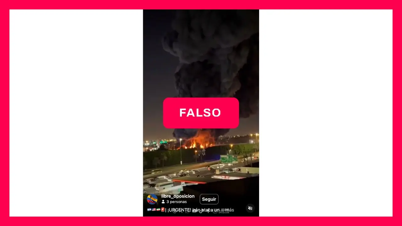 Sin embargo, esto es falso. Una búsqueda inversa en Google permitió corroborar que las imágenes circulan desde noviembre de 2025 y tratan sobre un incendio de un almacén en el área de Umm Ramool en Dubái.