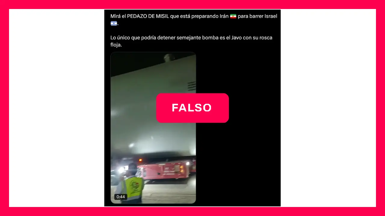 Circula en X y Facebook un video junto a un texto que afirma: “Mirá el PEDAZO DE MISIL que está preparando Irán para barrer Israel”.