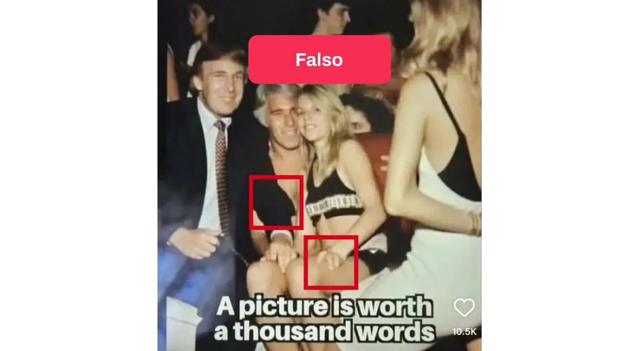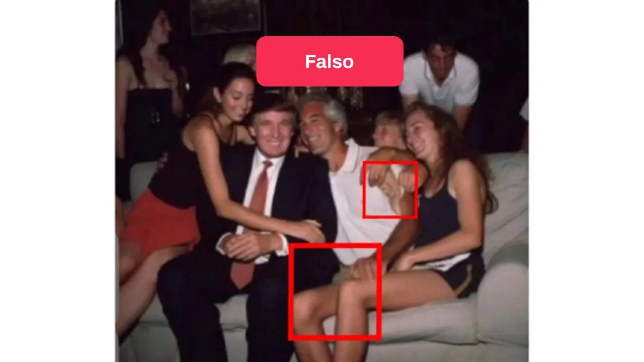 La imagen de Epstein y Trump sentados en un sillón no es real