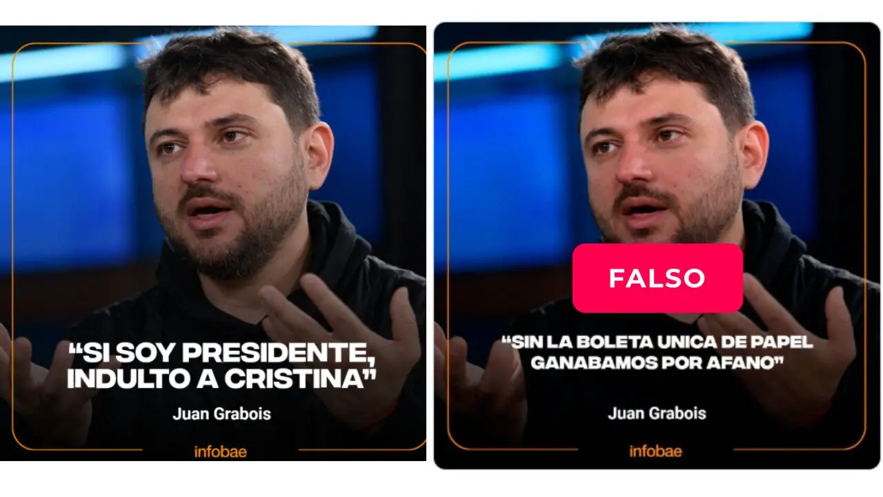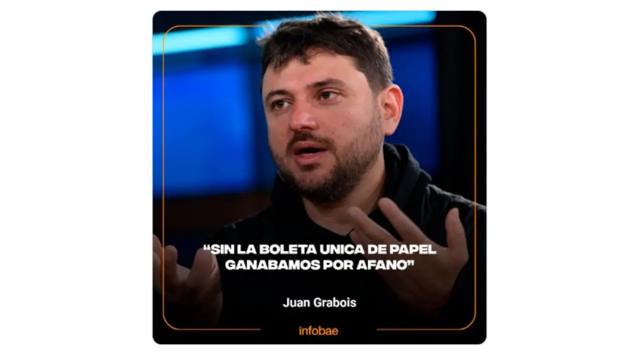 Tras las elecciones legislativas 2025, comenzó a circular en X una supuesta placa con la estética y el logo de Infobae, que adjudica al diputado nacional Juan Grabois (Fuerza Patria) la frase: “Sin la boleta única de papel ganábamos por afano”.
