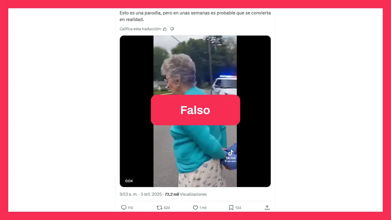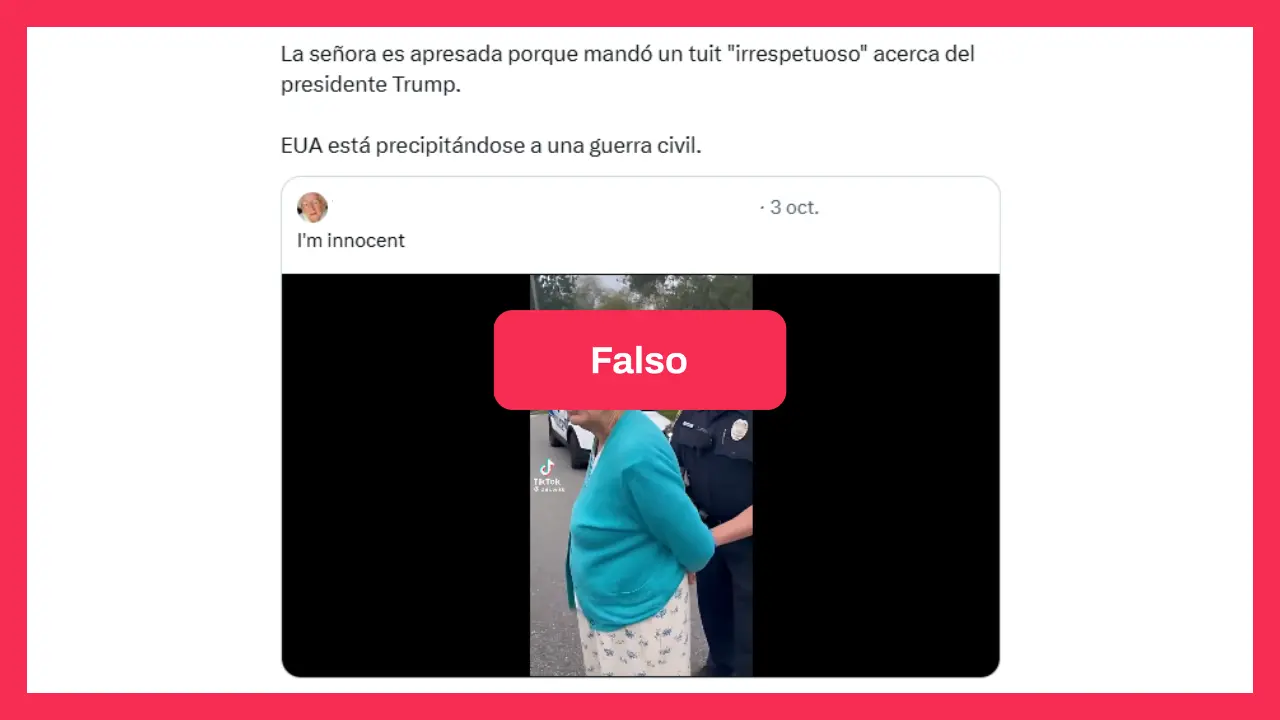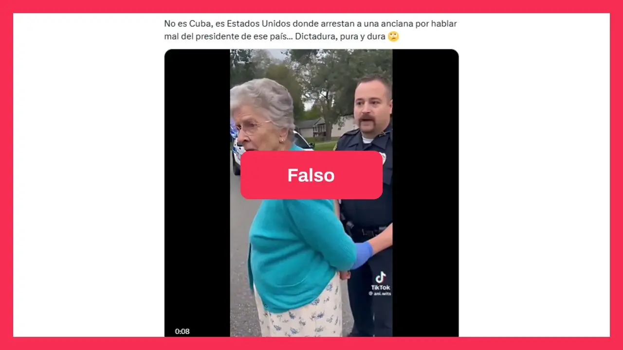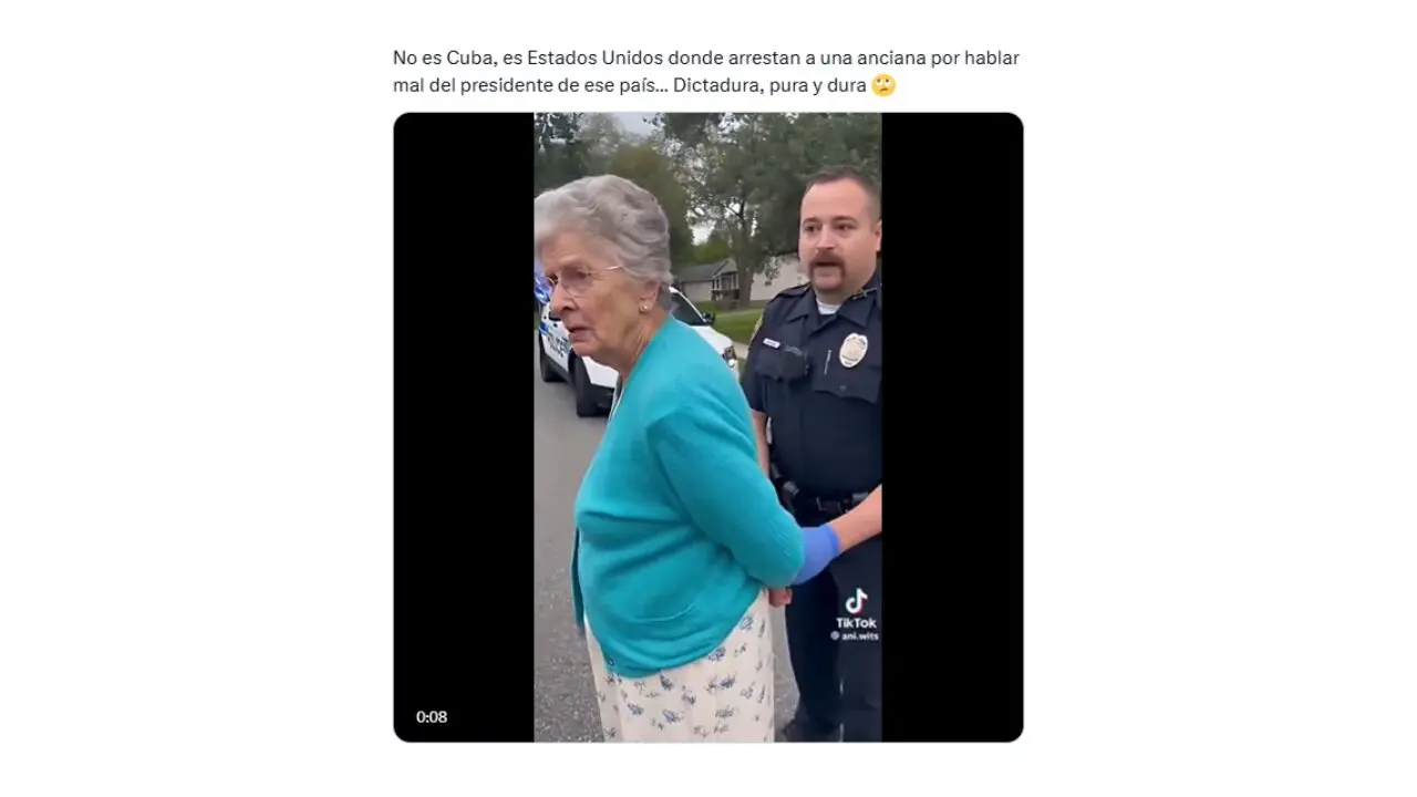 Usuarios de redes sociales comparten estas imágenes como si fueran reales. “No es Cuba, es Estados Unidos donde arrestan a una anciana por hablar mal del presidente de ese país… Dictadura, pura y dura”, alertó, por ejemplo, un usuario en X.