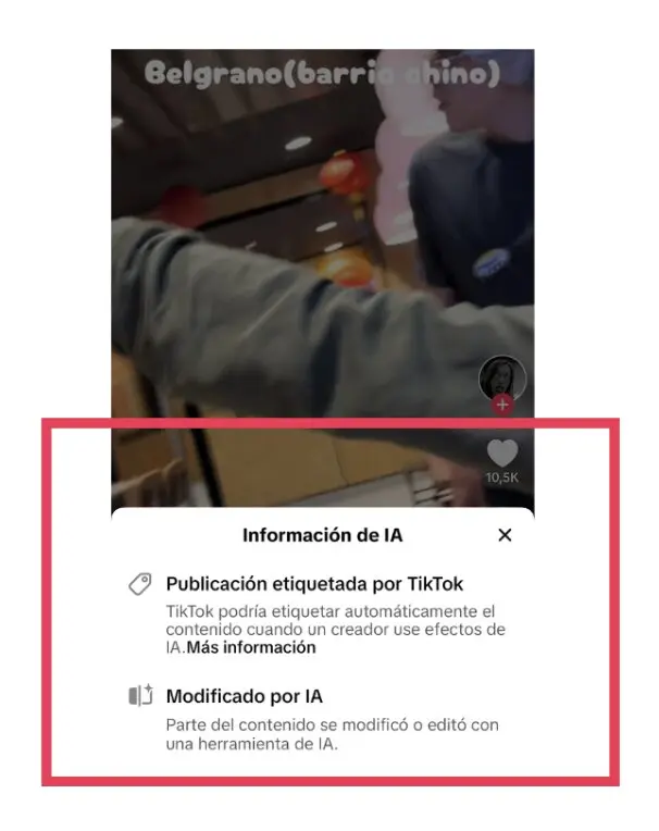 Este aviso puede ser aplicado al contenido automáticamente si el usuario le agrega filtros o efectos de la plataforma, y no necesariamente implica que el video esté generado con IA.