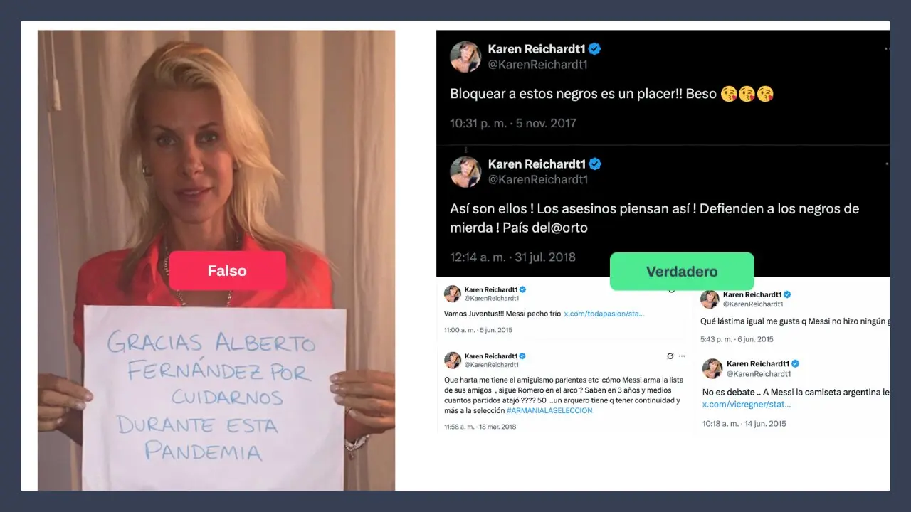 En redes sociales, comenzaron a circular varios contenidos referidos a Reichardt: un viejo posteo donde la candidata supuestamente apoyaba a Alberto Fernández (Frente de Todos) durante la pandemia, capturas de mensajes discriminatorios publicados en X  y varios tuits en contra de Lionel Messi. ¿Qué es falso y qué verdadero de lo que circula en redes sociales?