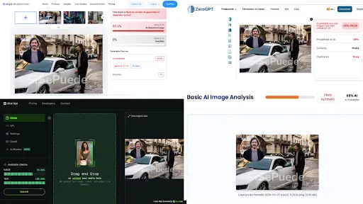 En todos los casos, la probabilidad de que la imagen haya sido generada con IA fue mayor al 66% y en algunos alcanzó el 90%.