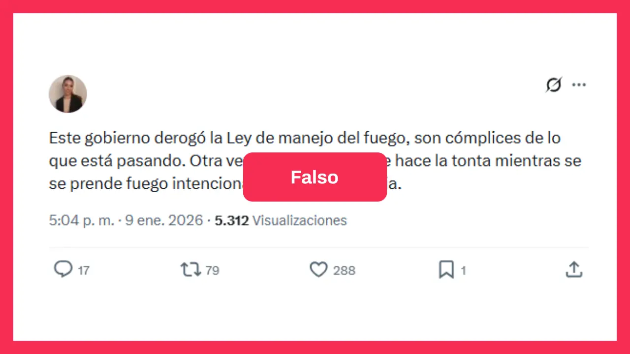 Mientras los incendios continúan azotando a la Patagonia argentina, circulan en redes posteos que aseguran que el Gobierno de Milei (La Libertad Avanza) derogó la Ley de Manejo del Fuego.