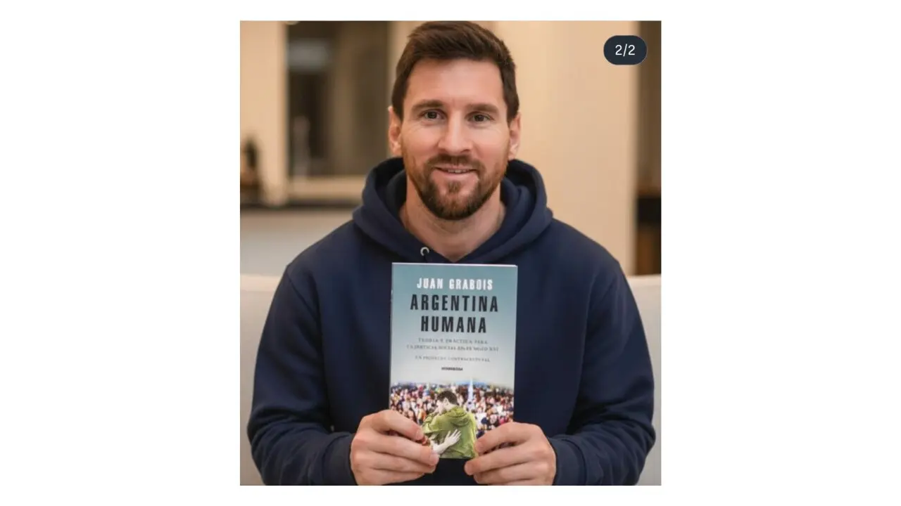 Luego de que circularan varias fotos y frases falsaa de Lionel Messi en el America Business Forum a favor del gobierno de Javier Milei, comenzó a circular en redes sociales una foto del capitán de la Selección argentina supuestamente posando con el libro del diputado nacional electo por la provincia de Buenos Aires, Juan Grabois (Fuerza Patria).