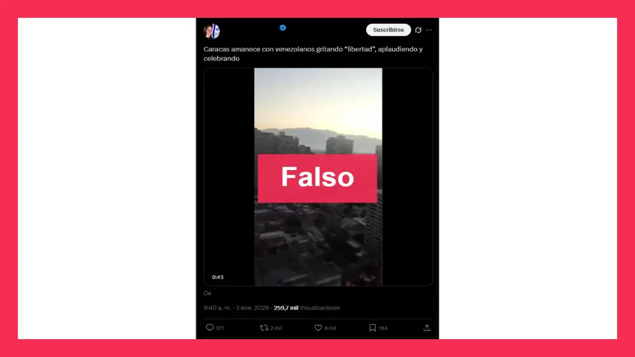 Circula en redes un video que muestra áreas residenciales de la ciudad de Caracas en el que se escuchan gritos y aplausos celebratorios, presuntamente por la detención de Maduro. Esto afirman, también, muchos de los posteos de este contenido: “Caracas amanece con venezolanos gritando ‘libertad’, aplaudiendo y celebrando”.