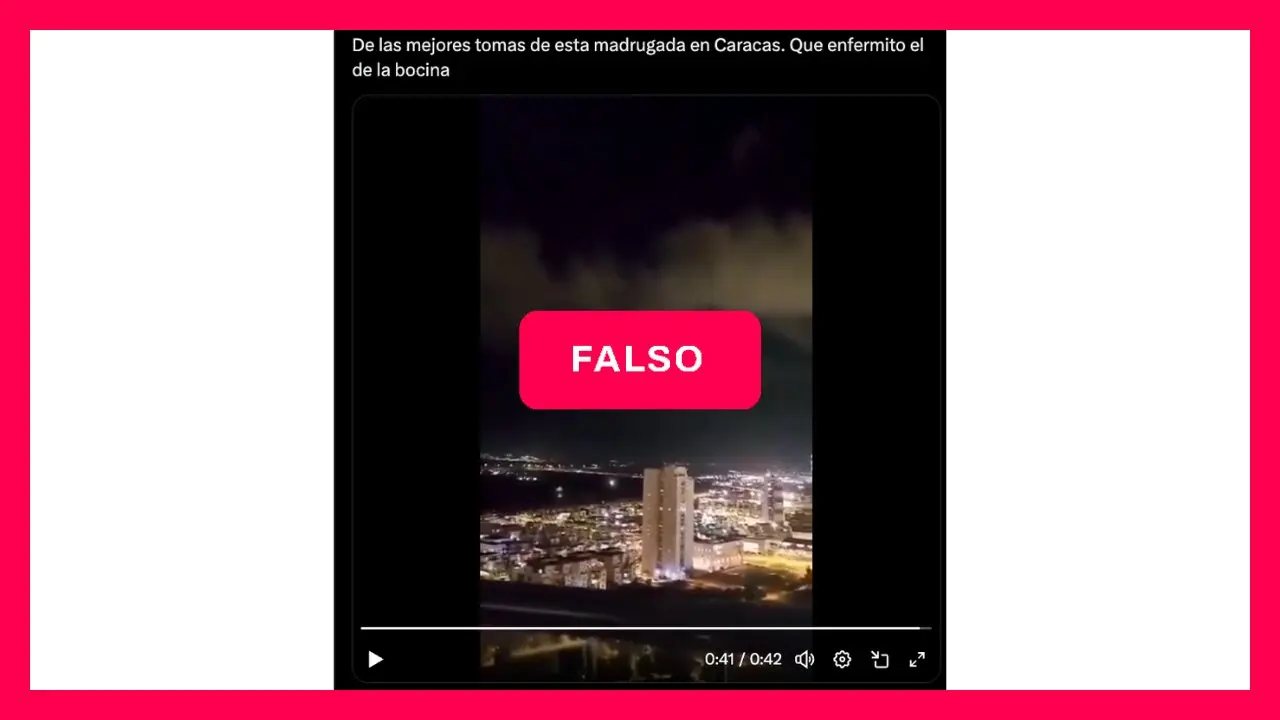 “De las mejores tomas de esta madrugada en Caracas”, señala un posteo en X junto a un video donde se puede ver una ciudad bombardeada de noche. Sin embargo, esto es falso.