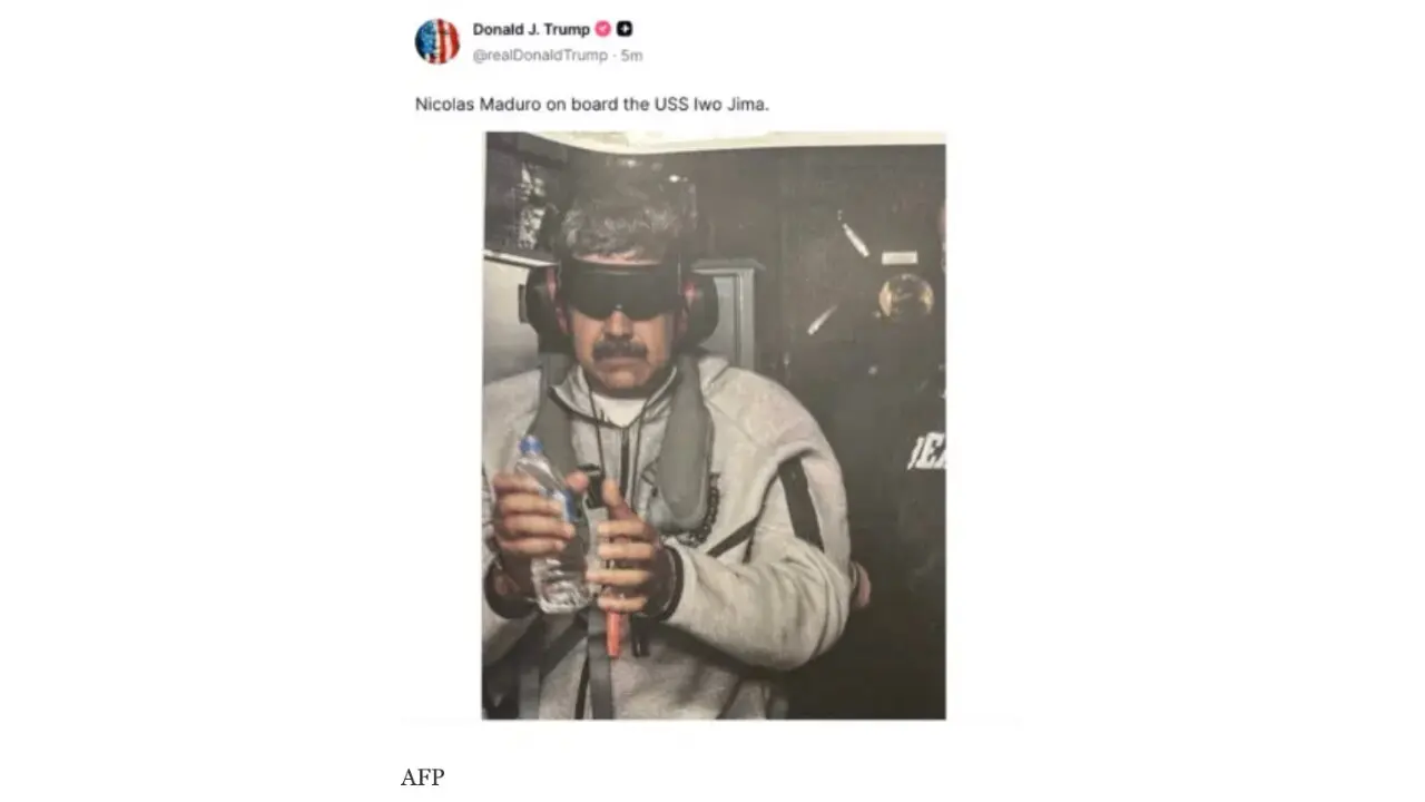 Trump publicó en su red Truth Social una foto de Maduro a bordo del USS Iwo Jima, un buque de asalto anfibio de la Armada de Estados Unidos construido en memoria de la batalla de Iwo Jima. La cuenta oficial de Casa Blanca también publicó la imagen, y la agencia internacional de noticias AFP hizo lo mismo, dándole el crédito al presidente estadounidense.