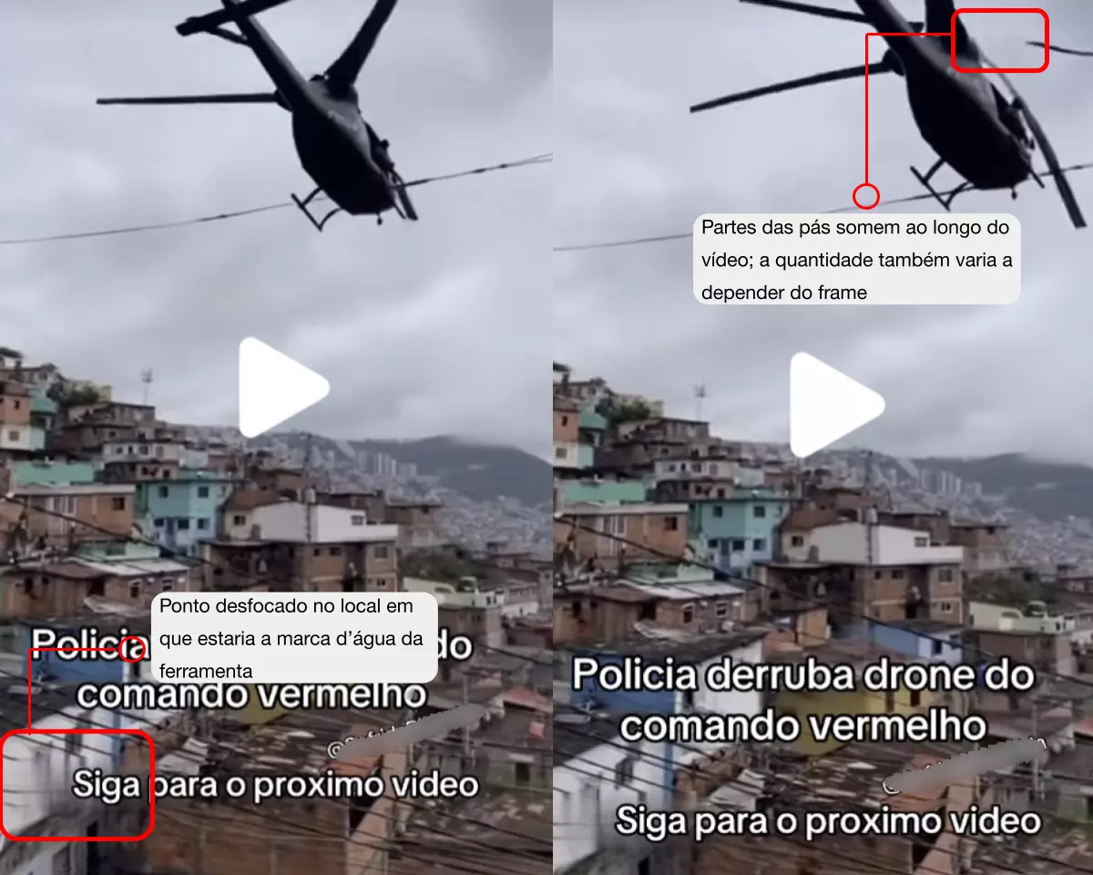 Uno de los videos artificiales, por ejemplo, muestra el supuesto momento en que un helicóptero de las fuerzas de seguridad derriba un dron del Comando Vermelho. Si bien el crimen organizado efectivamente usó drones adaptados para lanzar explosivos contra la policía, la grabación es falsa.